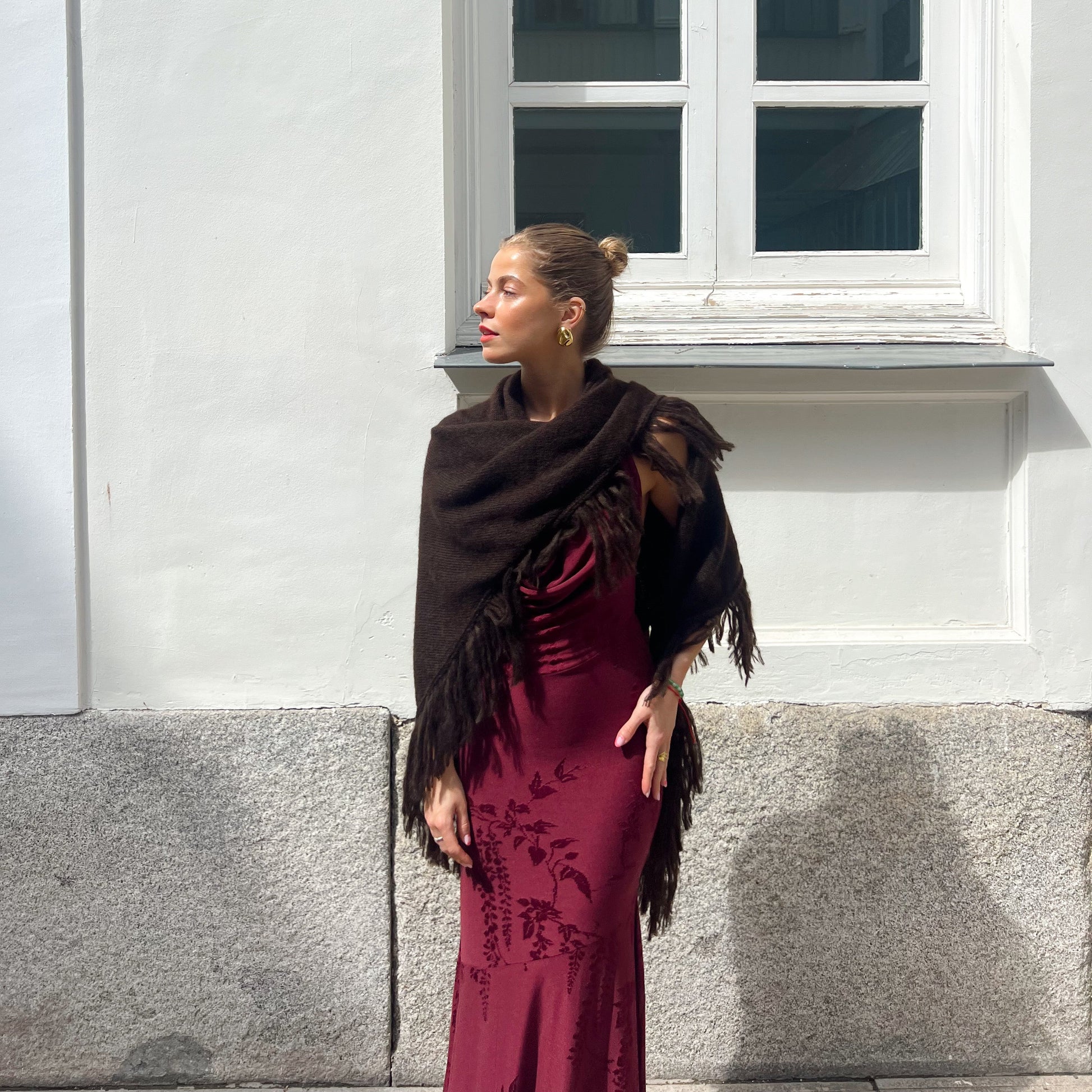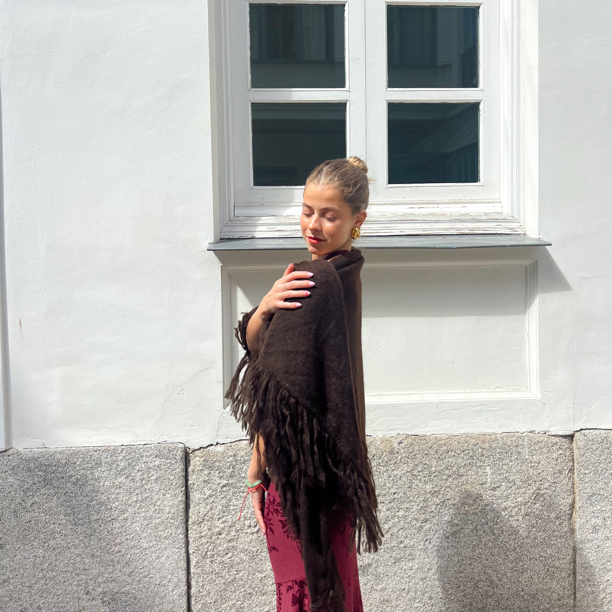 Su diseño triangular, rematado con flecos en los extremos, lo convierte en un accesorio muy elegante y versátil a la vez. Ligero y suave al tacto, es una pieza atemporal que aporta estilo sin renunciar a la comodidad.