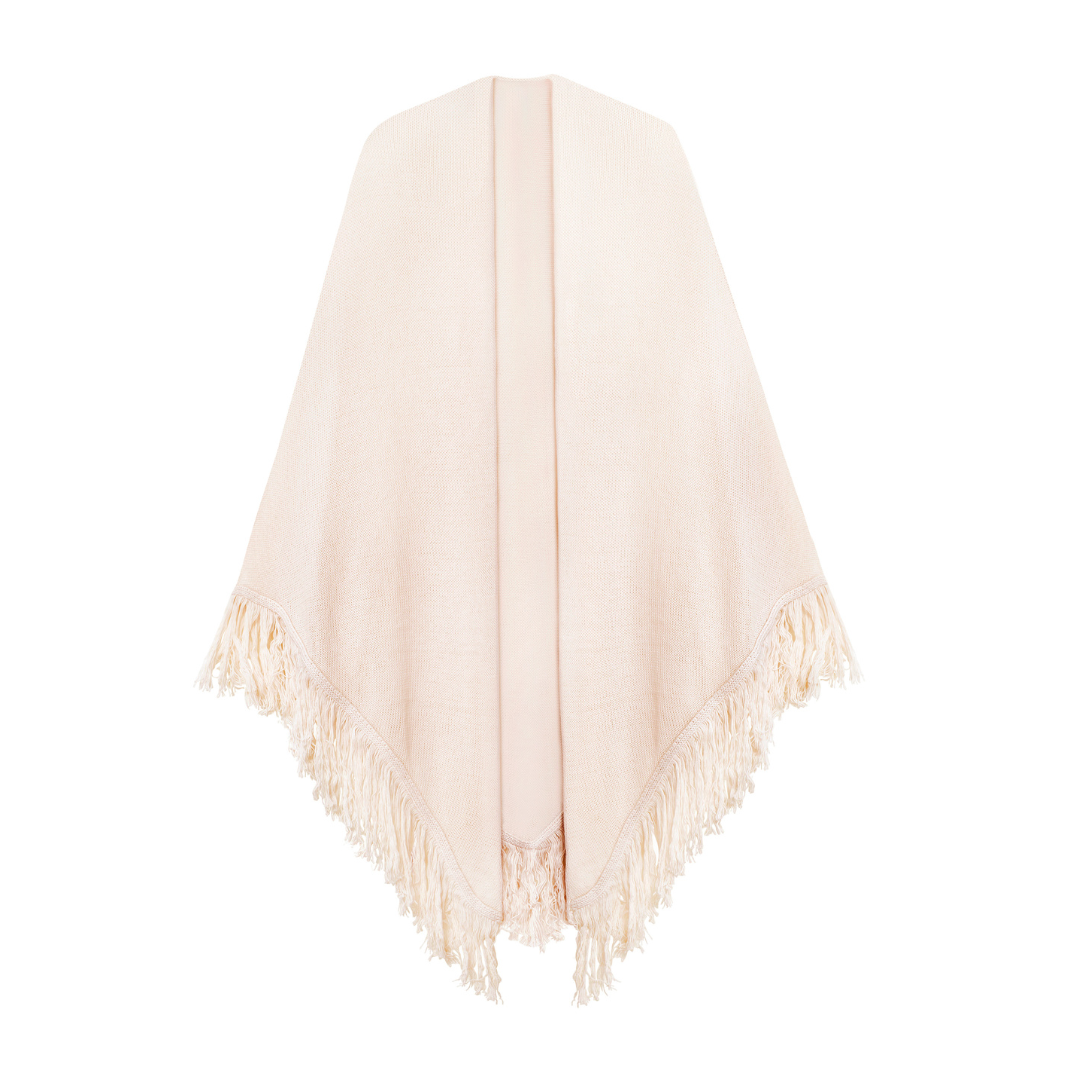 Con unas medidas aproximadas de 250 x 110 cm, se puede llevar de múltiples formas: suelto sobre los hombros, cruzado al pecho o como capa ligera para añadir un aire sofisticado sin renunciar a la comodidad.